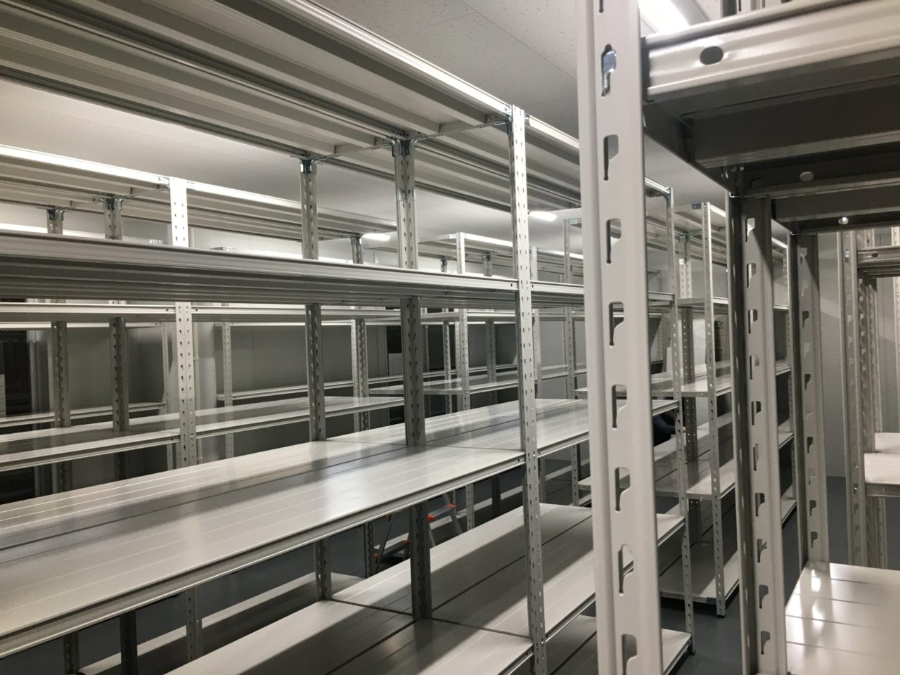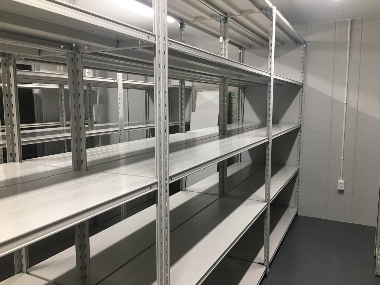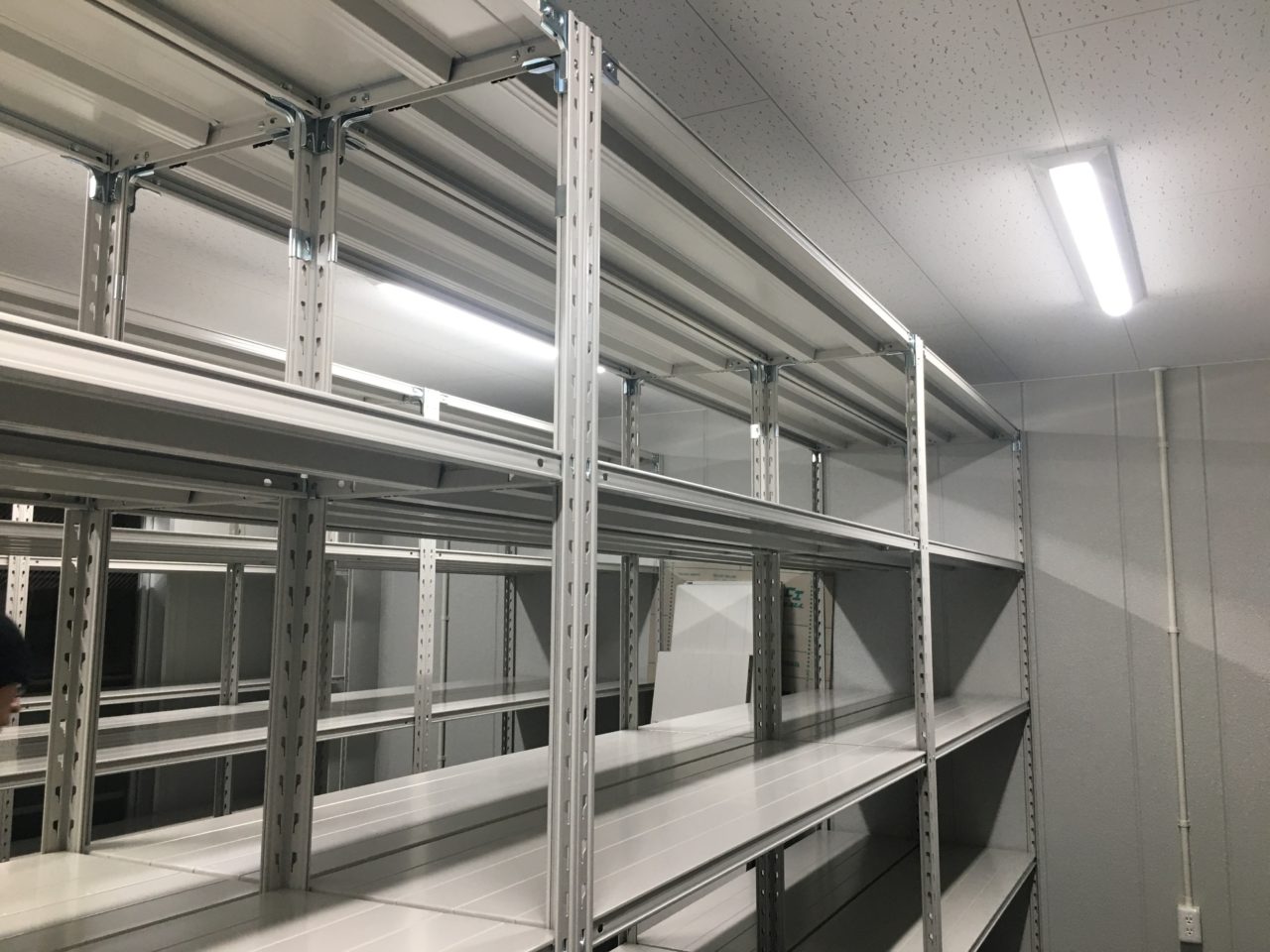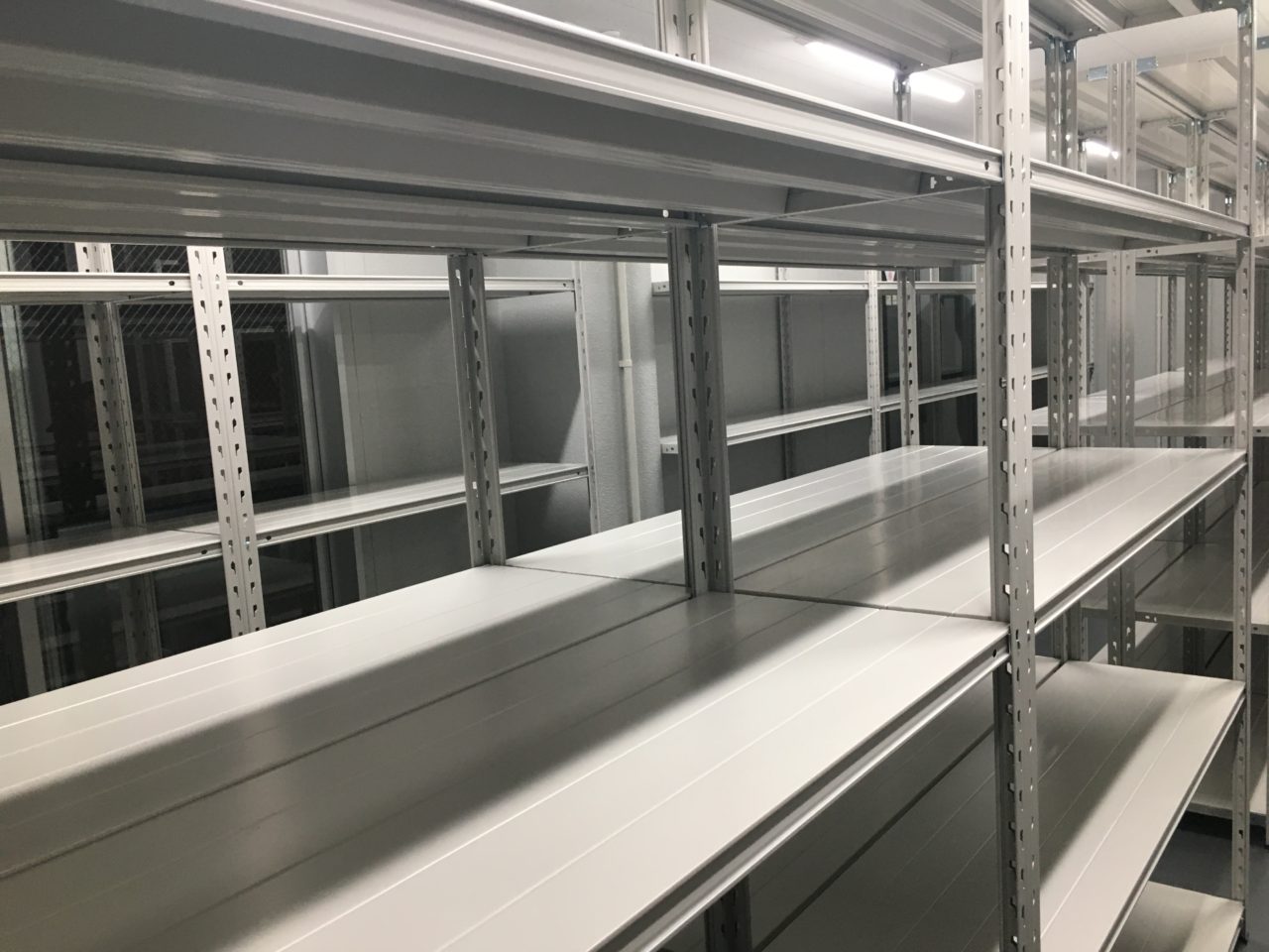 今回はお客様の新築事務所、新築倉庫内へ弊社の「軽量業務用スチールラック 150kg/段タイプ」の設置を行いました。