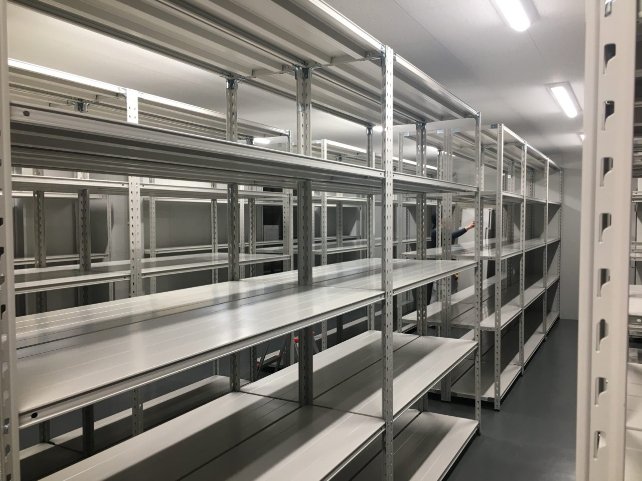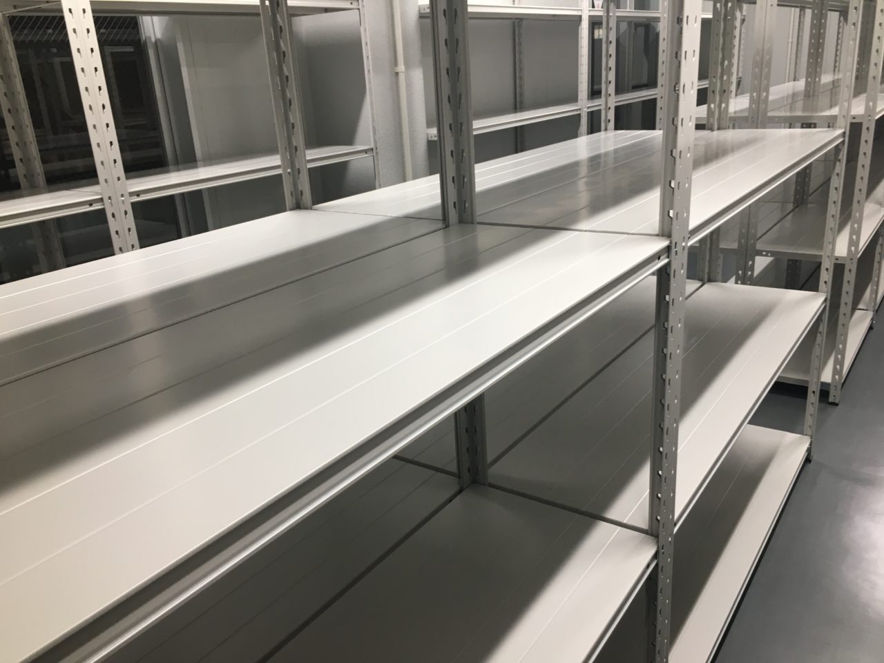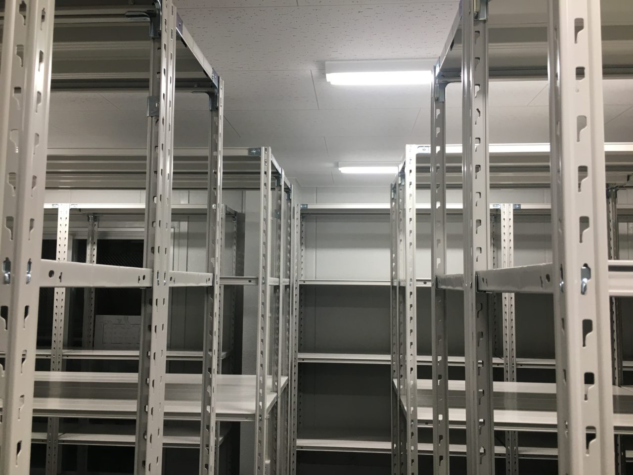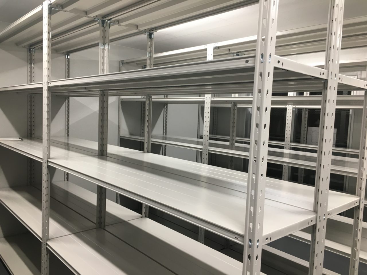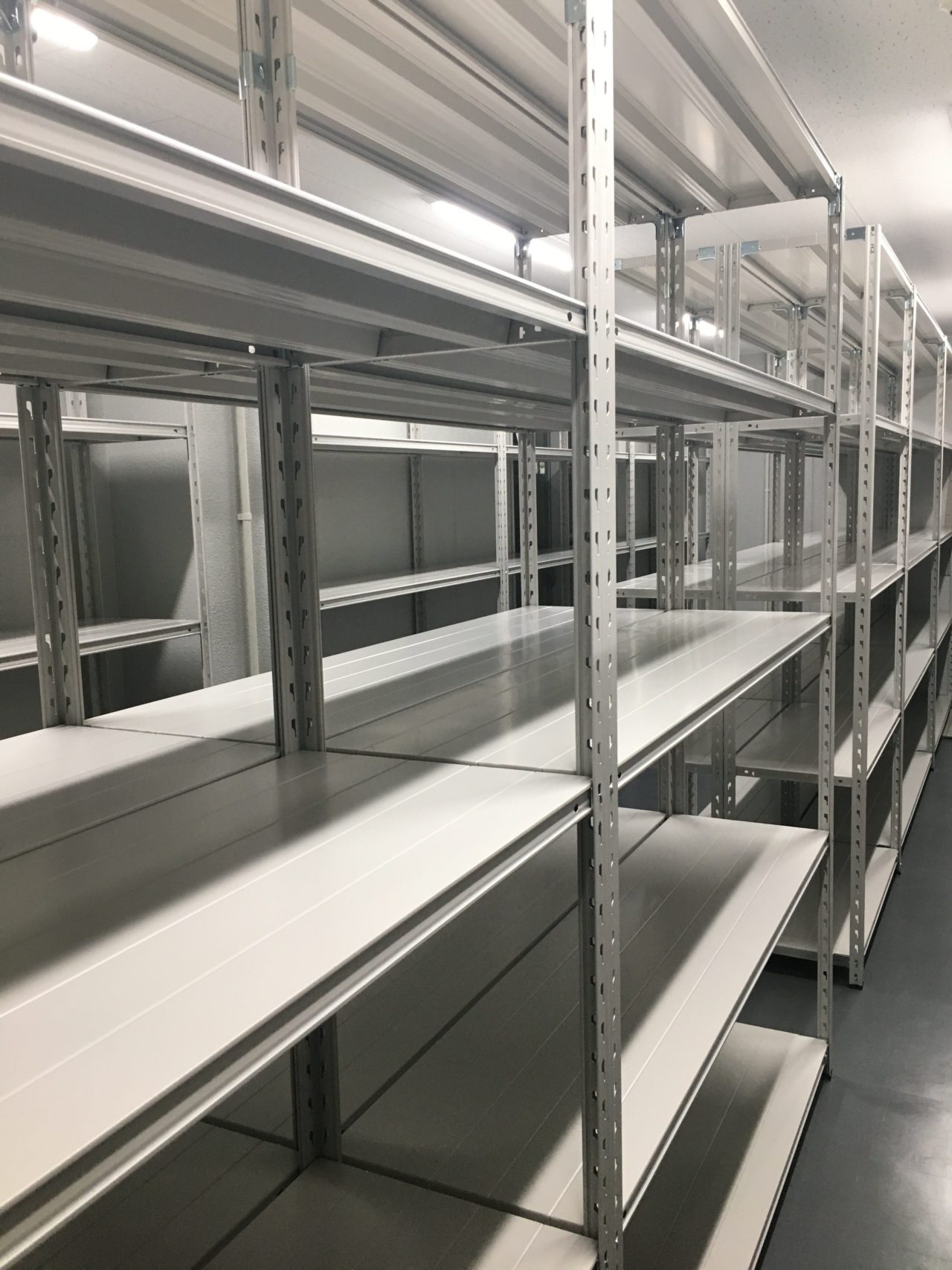 今回はお客様の新築事務所、新築倉庫内へ弊社の「軽量業務用スチールラック 150kg/段タイプ」の設置を行いました。