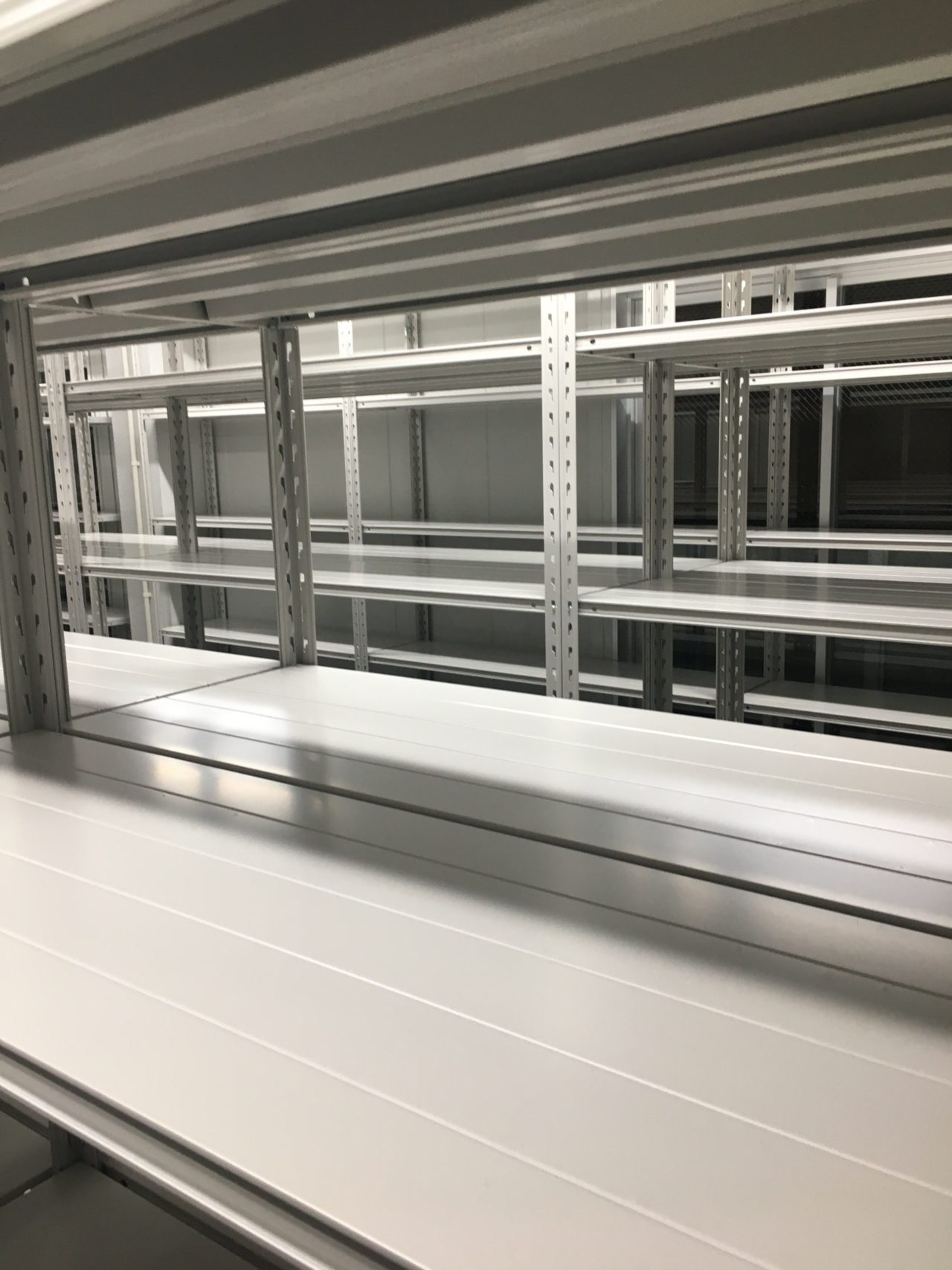 倉庫内の無駄なスペースを極力削減するため天井高に対して目一杯のサイズである「高さ2400mm」をお選びいただき無事設置を完了いたしました。