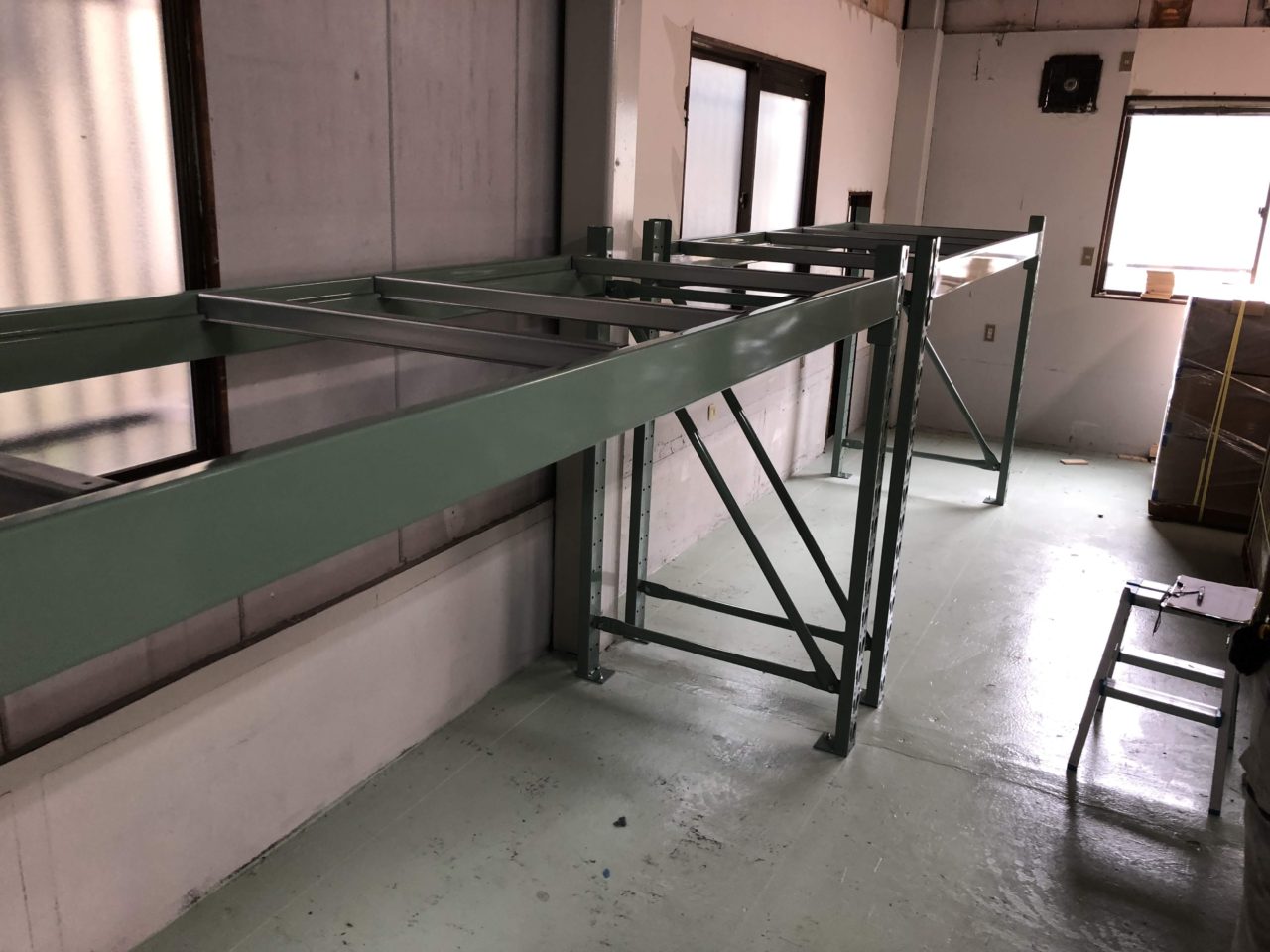 | 担当営業コメント | 高さ1600、床置1段、ビーム1段で間口の異なる2台をそれぞれ単独パレットラックをアンカー固定で設置いたしました。 弊社では床レベルをしっかり測量し、水平を出した上でパレットラックを設置いたします。 |