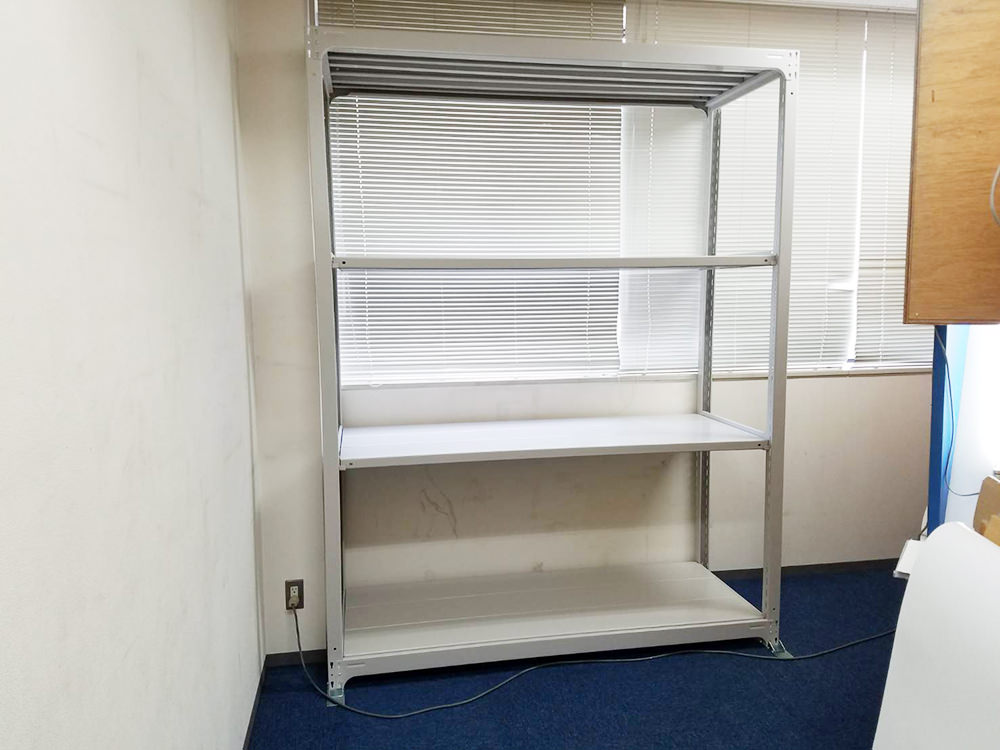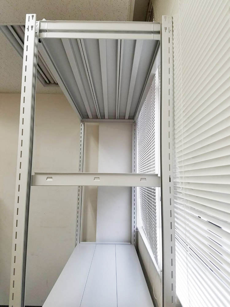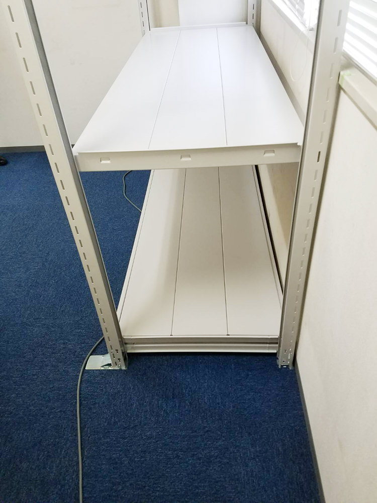 | 営業担当コメント | 耐荷重500kgモデル1台の組立・施工をご依頼頂きました。1段あたり500kgまで積載でき、ラック全体では約2tまで積載可能です。通常ライナップの中では一番の強度を誇っており、棚板裏の補強桟がより堅牢性を高めています。また、支柱に取り付けてある金具は転倒防止対策のオプションとなります。こちらは床に施工することなく、地震や揺れによる転倒のリスクを軽減してくれます。 |