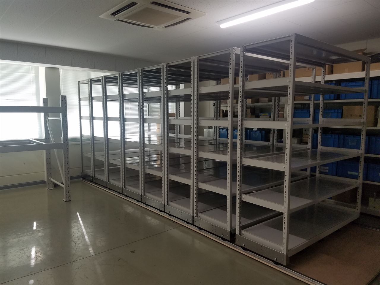 数量 パレットラック2台、レール式移動棚8台