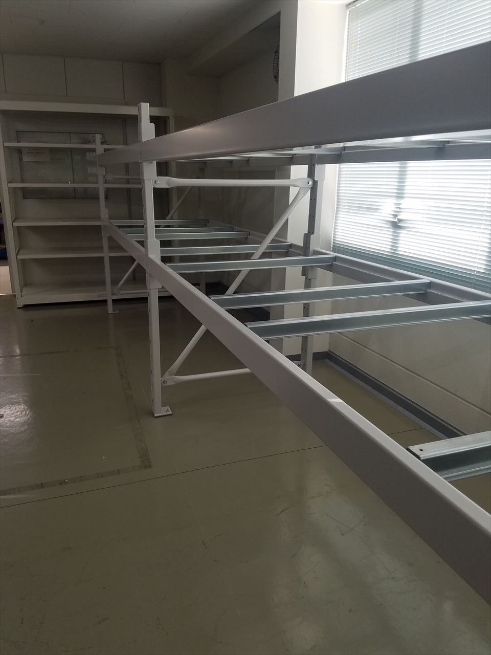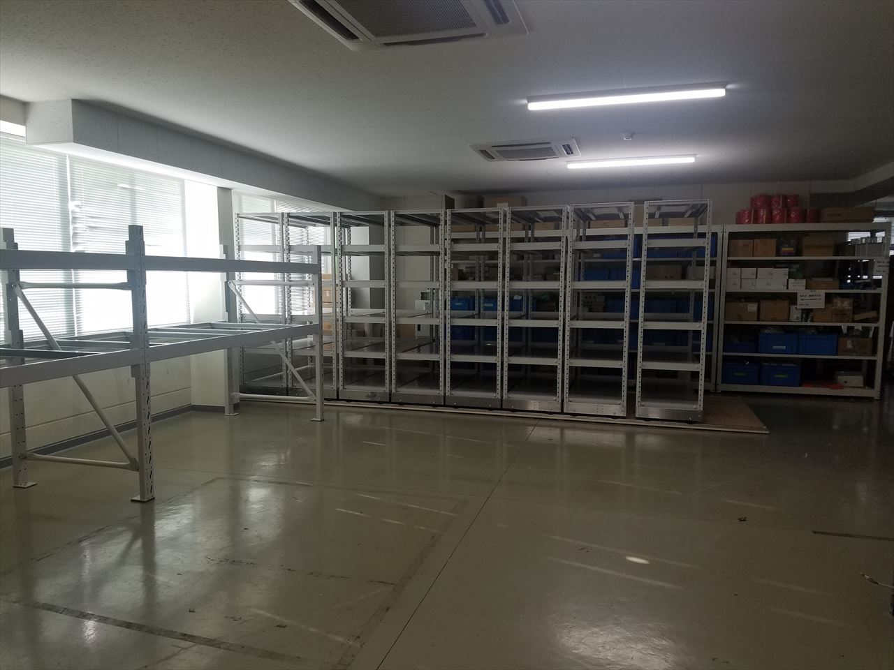 担当営業コメント 建屋内2Fに弊社のパレットラックとレール式移動棚を同時設置いたしました。