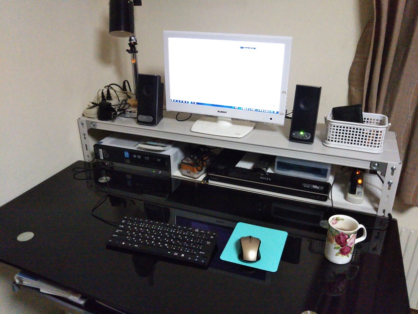 写真の手前の机に物を置いていたそうですが、物が増えてしまい作業をするスペースがなくなり効率が悪くなってしまったので、棚をご検討頂いたということです。