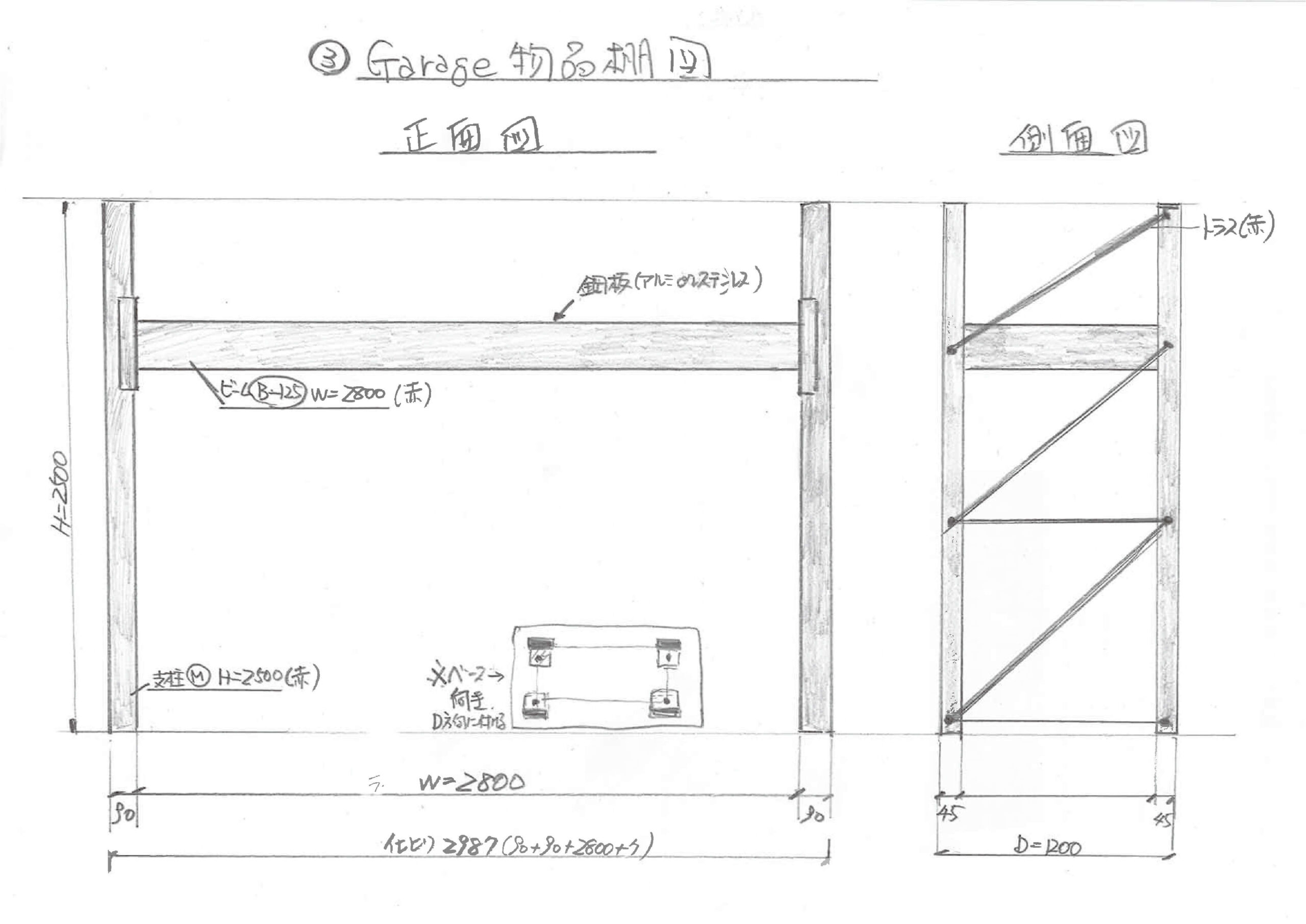 通常、パレットラックは前後のビーム(間口方向の梁部材)の上に直接パレットを載せることを前提としているため、スチールラックの棚板にあたる部材がありませんが、ガレージ内で車のパーツや趣味のものなどを置かれる物品棚としてお使いになるということでしたので板貼り仕様にしています。 今回使用したフロア材というのはその名の通り、床材です。通常の一枚板のスチール棚板に比べてたわみにくい割板仕様になっています。 今回はそのスチールフロア材を亜鉛メッキ仕様にしています。 もともと、アルミやステンレスなどをご所望されていましたが、標準のオプションとしてもご用意がなく非常に高額になるため、代替案として屋外用溶融亜鉛メッキ(ドブメッキ)をご提案させていただきました。 そしてやはりこのラックで目を引く点といえば、色ではないでしょうか。 とある国内工具メーカーのコーポレートカラーとほぼ同色化したいということで、赤色をご希望されていました。 パレットラックってこんな色もあるの?とお思いになった方もいらっしゃるかと思います。弊社のパレットラックの標準塗装色はホワイトグレーまたはライトグリーンですが、別色塗装の対応も可能です!別色塗装の際は、マンセル値や、日塗工の色番号をお知らせください。 T様にも別色塗装のご提案もさせていただきましたが、なんと、T様は、ご自身で塗装されました!支柱の穴の部分などは塗装が難しかったとおっしゃっていましたが、とても美しく塗装されています。 台数がまとまればそれほどのコストの差にはならない別色塗装の費用ですが、やはり1台だけとなりますと、コストは高くなりがちです。(今回のケースですと、別色塗装の場合は+6.5万円程度のお見積りとなりました) 簡単ではないと思いますので、安易にオススメはできませんが…お客様ご自身で塗装するという選択肢もありなのかもしれませんね。 ちなみにT様は建設業をされていた方で、現地測量や組立て施工にはある程度の知識と経験がおありということで、組立もご自身でされました。 パレットラック設置にはレベルの調整やアンカー打ちのための墨出しなどが必要となりますので、通常は施工費を含めてお見積させていただきますが、組立設置なしで物品納品のみ、ということも対応可能です。 今回T様はかなり入念に下調べをされていて、その上で、イメージがわかる手書きの図面も送っていただきました。(写真3.4.5枚目) T様の場合は寸法もイメージもしっかりと確定されており、図面もかなり詳細まで書き込んでいただいていますが、寸法などが確定していない場合や、パレットラックがどういうものかわからないけれど、こういう棚が欲しい!という場合でも、簡単な手書きの図面やイラストがあるとイメージの齟齬が生じにくく、スムーズにご提案することができますので、ぜひ、お気軽にご相談くださいね。 T様のまるでショウルームのような完璧な空間に、弊社のパレットラックが設置されており、感激している次第です。 |