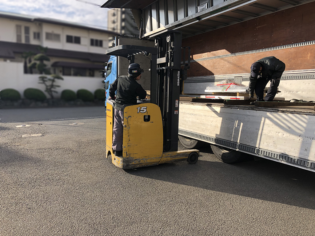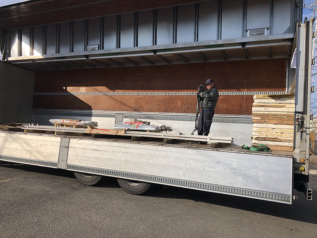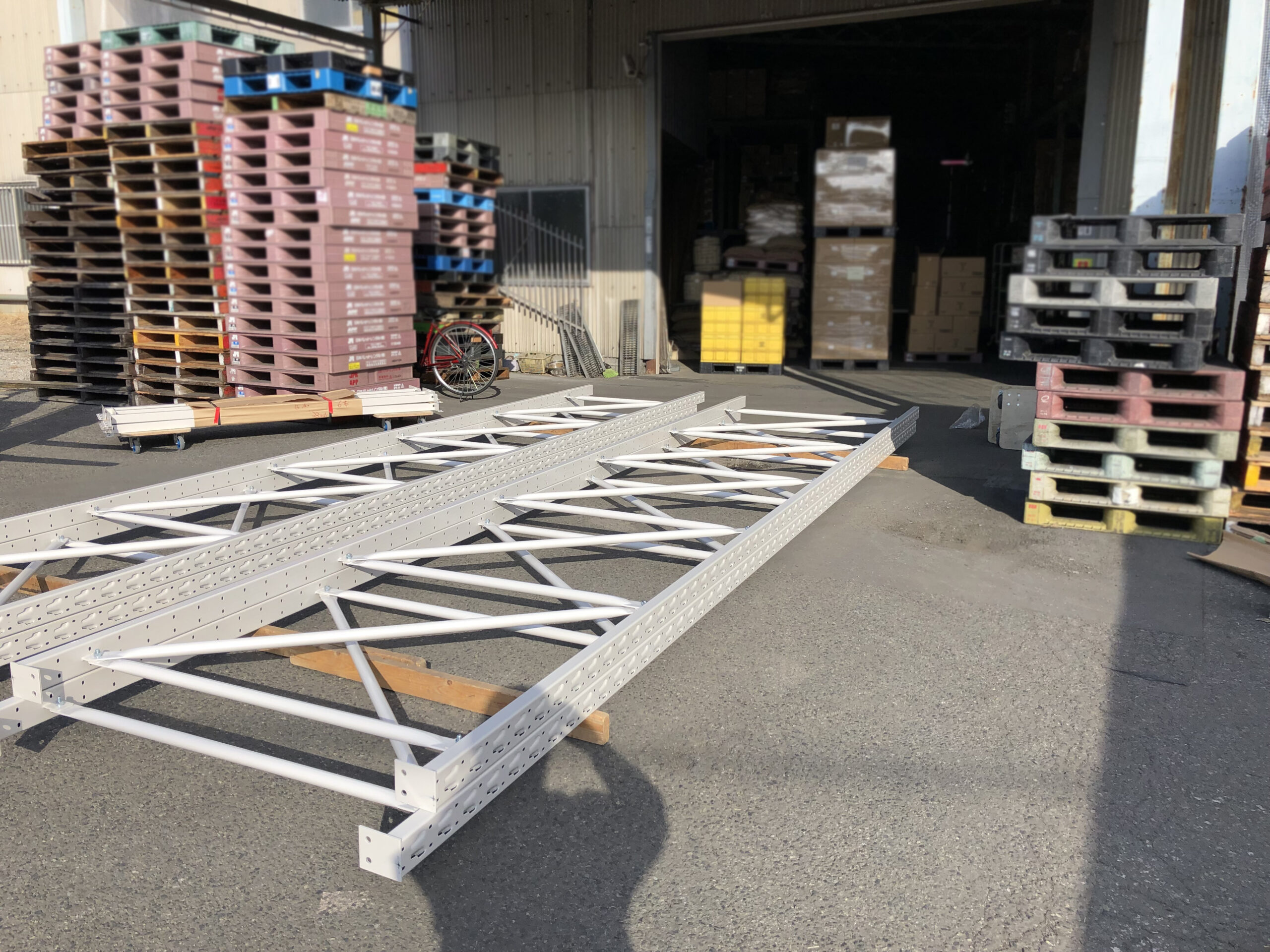 通常は置かれるものの荷姿からパレットラックの寸法を選定させていただきますが、今回はすでに倉庫に設置してあるラックに合わせて設置をしたいということで、寸法指定でご依頼いただきました。 パレットラックは前後のビーム(間口方向の梁部材)の上に直接パレットを載せることを前提としているため、スチールラックの棚板にあたる部材がありませんが、パレット積みのお荷物以外にもダンボールなども収納されるということでしたので、1台はパーチクルボード貼り仕様にしております。 パーチクルボードはスチールの板に比べると安価ですので、価格を重視される際の板張りにおすすめです。 弊社ではパレットラックの製造可能サイズを6000までとご案内しておりますが、お客様のご希望のラックの高さが6200とかなり高さのある仕様でした。かつスペースにも限りがあるということをお聞きしておりましたので、今回は私とメーカー担当者、施工業者と実際に現地を見せていただきました。 高さ6200ですと通常は背面にブレースが入りますが、背面ブレースが入ると既存のラックと前ツラを合わせることができないため、背面ブレースを入れないことをご要望としてお聞きしましたので、設計の者と相談しアンカー本数を増やして固定度を高め、背面ブレースを無しにするという内容で最終的にご提案させていただきました。 施工を含むパレットラックの納品は専用チャーター便でのお届けするのが基本となっております。 車上渡しとなりますので、フォークリフトなどで荷降ろしを行う必要がございますが、基本的にはパレットラックの組立施工費には荷降ろしの費用も含まれておりますので、フォークリフトをお借りして施工業者が荷降ろしを行います。 パレットラック設置にはレベルの調整やアンカー打ちのための墨出しなどが必要となりますので、パレットラックの導入をご検討されている場合は、ぜひ経験豊富な職人におまかせください! 今回のように製造可能サイズを超える寸法でも条件によっては対応が可能でございますので、諦める前に一度ご相談くださいませ。 |