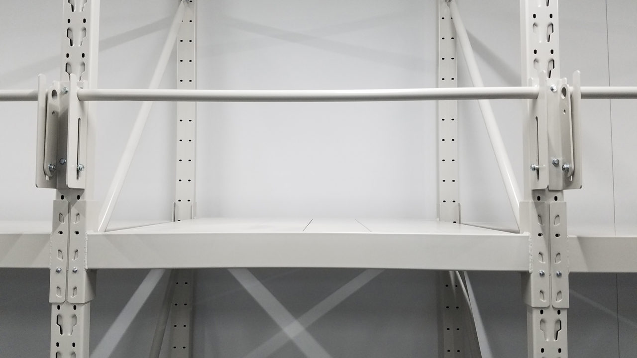 オプションとしてパレットラックに回転式落下防止バーを付けております。 |