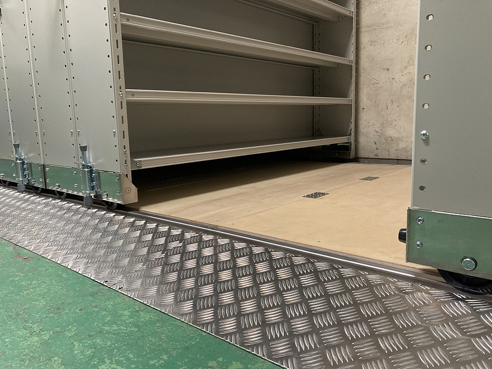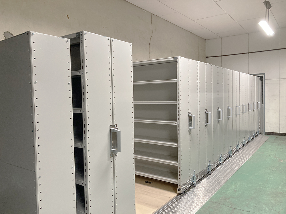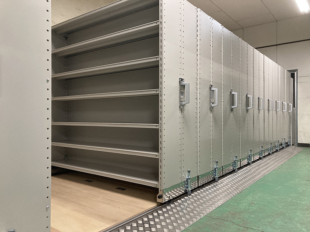 担当営業コメント レール式移動棚を導入いただきました。