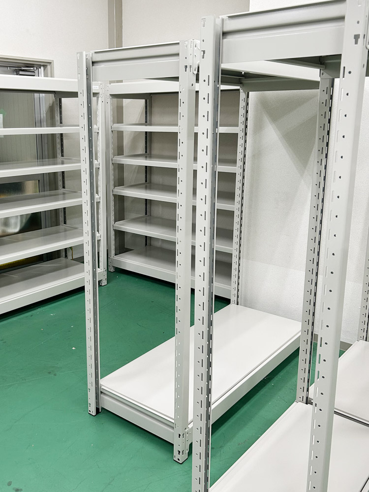 金属・機械加工工場でも使用される業務用スチールラックで、今回のような自動車部品を取り扱う企業でもよく採用されています。