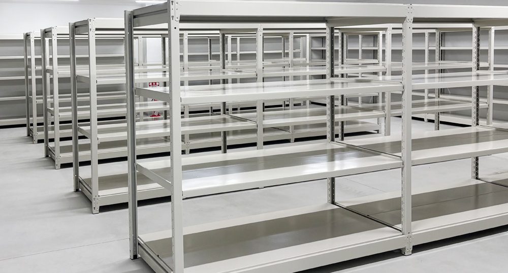 セキュリティ機器を取り扱う会社の新設倉庫内に、45台のスチールラックを導入させていただきました。 今回導入したのは、1段あたり300kgまで積載できる業務用スチールラックです。 セキュリティ機器はもちろん、重量のある電気設備資材や部材の保管に適した製品となっています。 ボルトレスラックの特長とスムーズな設置対応今回設置した中量スチールラックは、ボルトレスラックと呼ばれるラックです。 まとめ今回のように、重量のある機器や資材を保管する場合、中量300kgのボルトレススチールラックがおすすめです。 スチールラックの選定でお悩みの場合でも、お客様の収納物に合わせたご提案をさせていただきます。 業務用ラックの導入をご検討の際は、ぜひお気軽にお問い合わせください。 |