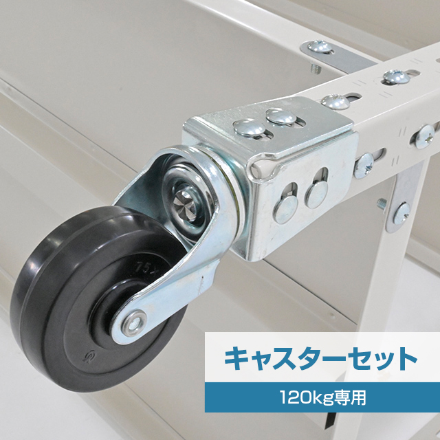 ※荷物の運搬を目的としたご使用はお控えください。 ※高さ2100以上、または奥行300のラックにキャスターセットを取り付けて使用される場合は、バランスを崩しやすいため、ゆっくりと移動させてください。 ※取り付けの際は最下段の棚位置を一段上げてください。 |